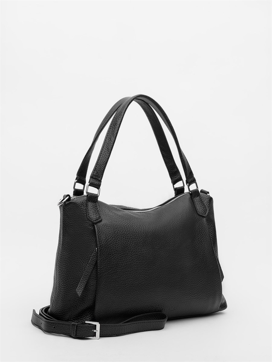 Элегантная женская сумка-тоут среднего размера из натуральной кожи с двумя удобными ручками для комфортного ношения. Регулируемый ремень с пряжкой позволяет менять длину и носить её на плече или в руках. Внутри просторное основное отделение со стандартными карманами и дополнительный накладной карман на молнии для мелочей. На передней части сумки стильное тиснение по низу, придающее модели изысканный акцент. Идеальный выбор для повседневного образа, сочетающий практичность и классический дизайн.