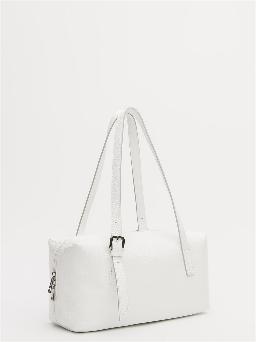 Стильный саквояж в модной форме "Еast-west" из натуральной кожи с вытянутым горизонтальным силуэтом. Регулируемые длинные ручки с пряжками позволяют носить сумку на плече или в руке. Внутри - два стандартных кармана для удобного хранения мелочей. Задний карман на молнии и тиснение на передней части добавляют практичности и элегантности. Идеальный аксессуар для тех, кто ценит трендовый дизайн и качественные материалы.