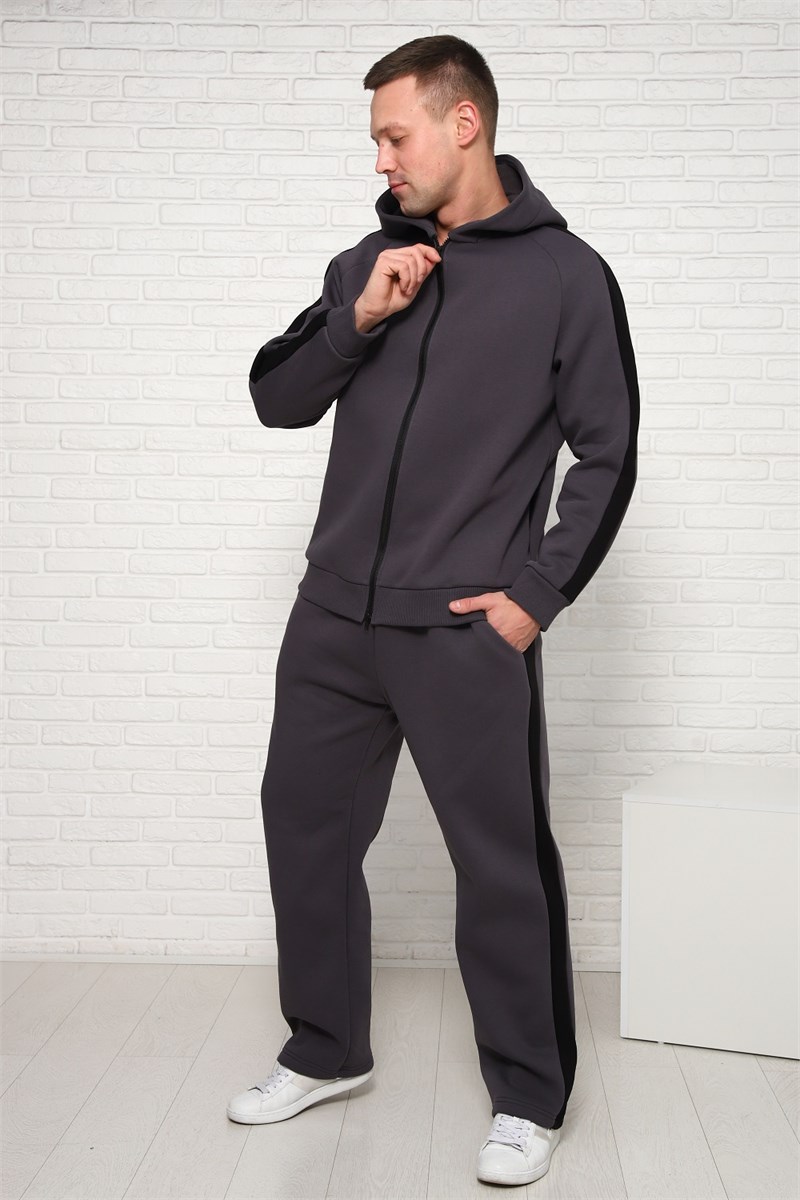 Мужской костюм с широкими лампасами, стильный и тёплый. Брюки на комфортном эластичном поясе, с боковыми карманами. Толстовка с капюшоном, на молнии, с боковыми карманами. Футер 3-х нитка с начёсом на изнаночной стороне.