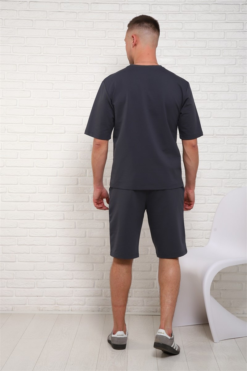 Костюм мужской состоит; футболки с короткими рукавами прямого кроя и шорты с боковыми карманами
