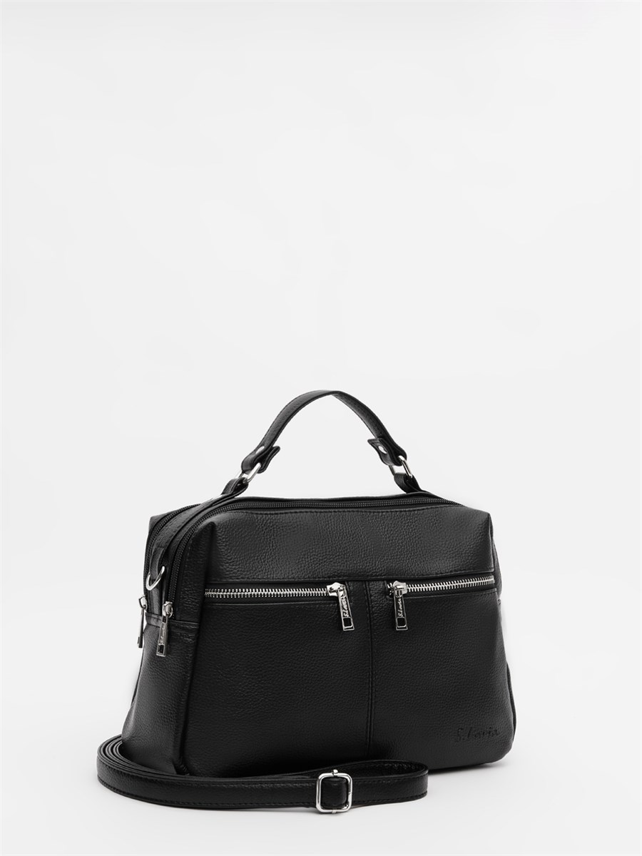 Саквояж — элегантный аксессуар для делового стиля. Разрезная передняя деталь с двумя карманами на металлической молнии придает модели строгий, но выразительный характер. Два основных отделения на спиральной молнии и продуманные карманы (включая задний для телефона) обеспечивают идеальную организацию пространства. В комплекте два варианта ношения: длинный регулируемый ремень на карабинах для ношения через плечо и короткая ручка для классического варианта. Этот саквояж станет отличным выбором для офиса, деловых встреч и других формальных ситуаций, где важны и стиль, и функциональность. Лаконичный дизайн с акцентными деталями подчеркнет ваш безупречный вкус, сохраняя профессиональный образ.