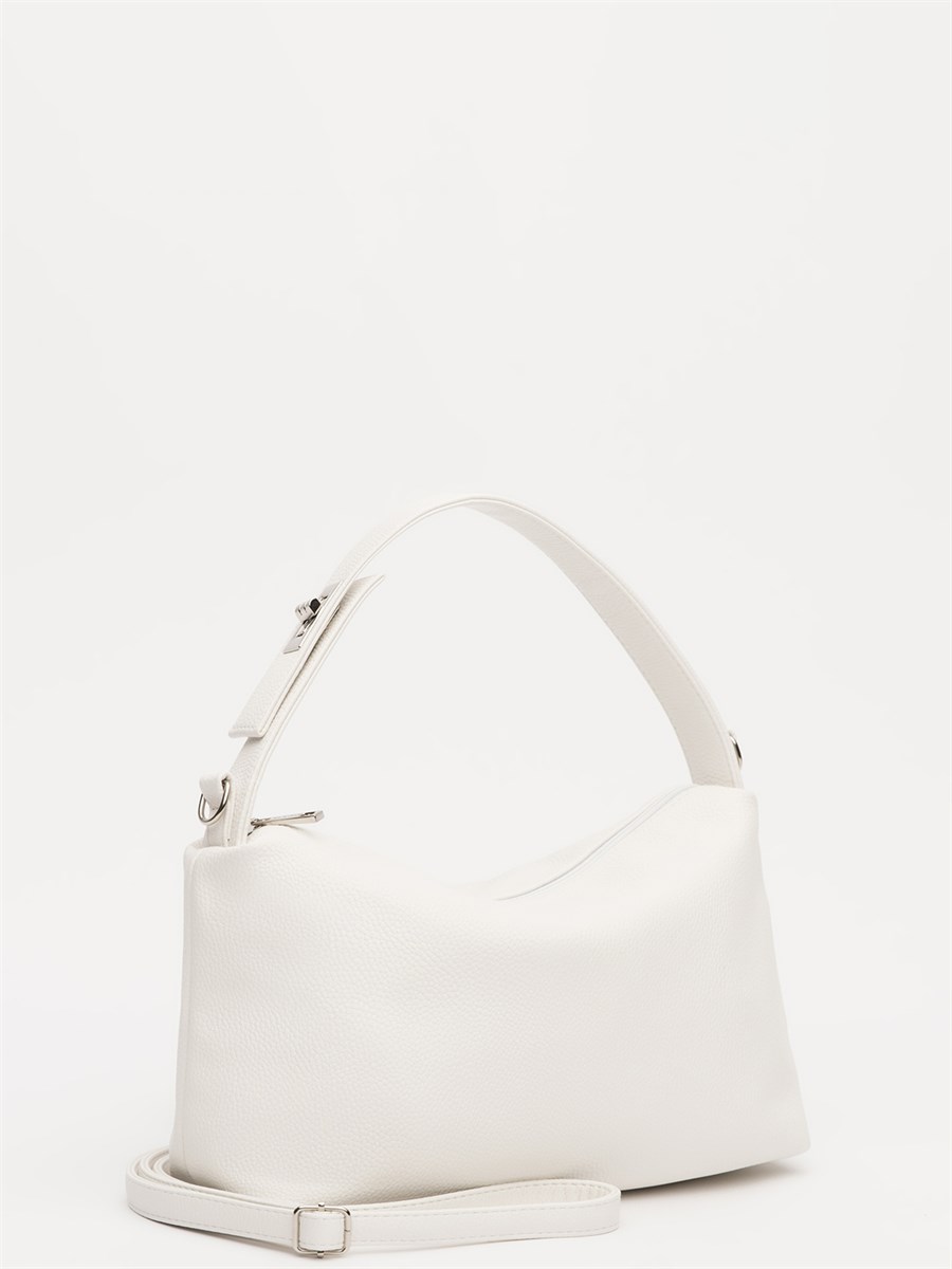 Мягкая вытянутая форма с широкой декоративной ручкой и металлической фурнитурой делает эту модель трендовым аксессуаром. Удобная короткая ручка идеально ложится в ладонь, а съёмный длинный ремень позволяет носить сумку через плечо. Основное отделение и задний карман на молнии обеспечивают практичность, а два внутренних кармана помогают поддерживать порядок.