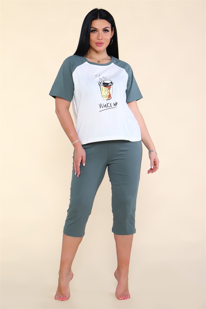 Представляем вашему вниманию наш комфортный домашний костюм, который включает в себя футболку с округлым вырезом и бриджи средней посадки. Эти трикотажные бриджи прекрасно пропускают воздух, что делает их идеальными для выполнения домашних дел или отдыха на даче. Вы также сможете насладиться сладким сном в этой уютной пижаме.