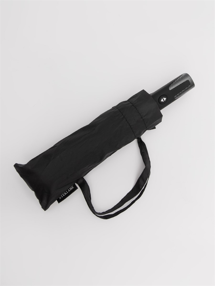 Классический мужской зонт-автомат в чёрном цвете. Имеет 10 спиц из фибергласса, пластиковую ручку и металлический каркас, материал купола - эпонж, диаметр зонта в раскрытом виде 95 см, в сложенном виде длина зонта 34 см. Выручит вас в самую дождливую погоду!
