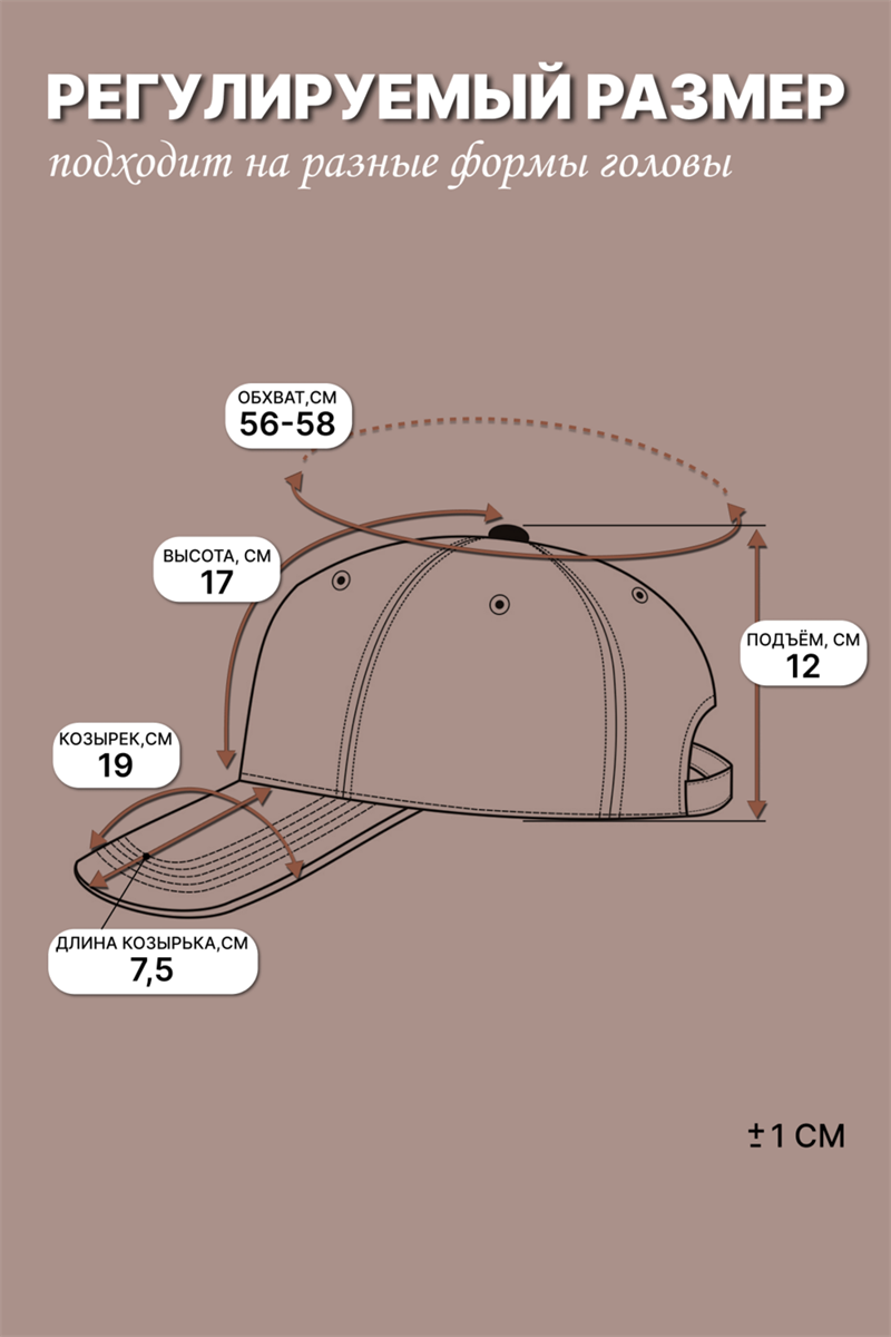 Бейсболка выполнена из 50% хлопка и 50% полиэстера, что позволяет долго сохранять насыщенный цвет и форму.