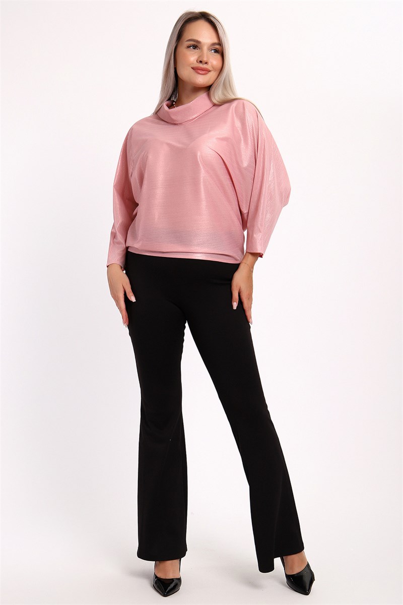 Нарядная и эффектная блузка из ткани шифон- металлик. Ткань тонкая, слегка прозрачная, имеет красивый металлический блеск, переливаясь на складках изделия, не мнется и отлично драпируется. Свободный крой и рукав летучая мышь делает эту блузку универсальной, подходящей на любую фигуру. Длина рукава 3/4, воротник- хомут придает женственности образу. Блузка слегка заужена к низу, чтобы на бедрах образовался напуск. С помощью этой блузки можно создать и праздничный, и деловой, и повседневный образ, комбинировать с юбкой и брюками. Широкий размерный ряд - с 48 по 62 размеры. Рекомендуем стирать изделие в режиме бережной стирки или вручную.