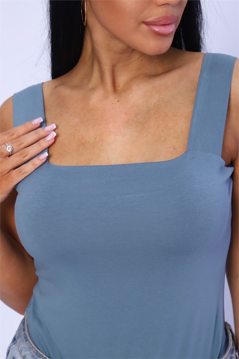 Модель боди-майка без рукавов. Ластовица с застежкой на металлических крючках.