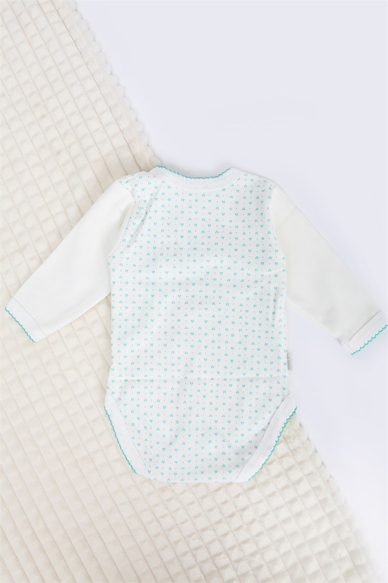 Боди для девочки. Выполнен из 100% хлока. Ткань интерлок. Кнопки сбоку изделия и между ножек. Украшен принтом на водной основе. Края изделия обратаны мережкой.