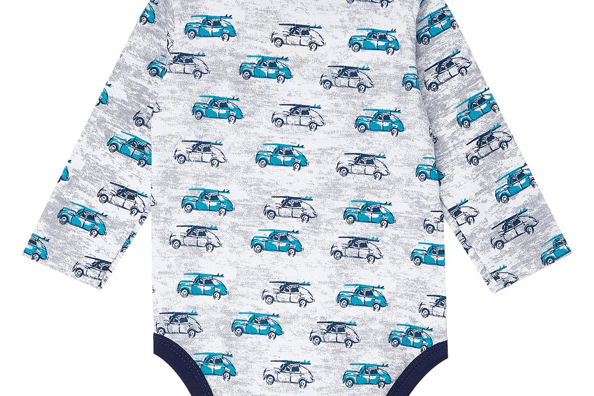 Боди. Ткань интерлок. Застежки - кнопки, на плечеке и между ножек. Украшен принтом из водных материалов. Для повседневной носки. Обращаем Ваше внимание, что правильное определение размера детской одежды напрямую зависит от индивидуальных особенностей ребёнка.