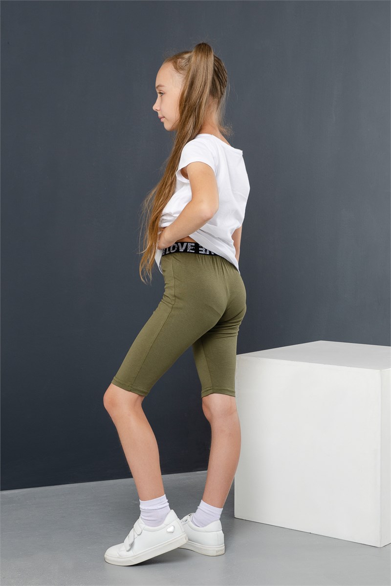 Бриджи-велосипедки облегающие, длинной выше колена, сверху на декоративной резинке.