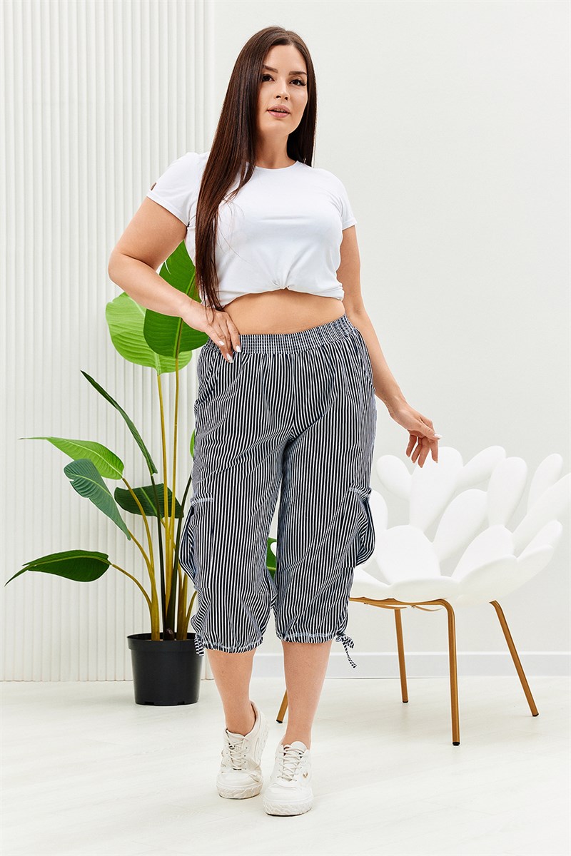 Бриджи прямого силуэта, внизу брюк разрезы и утяжки. На передних частях внутренние карманы и боковые с бантовой складкой. Пояс выполнен на многоигольной машине