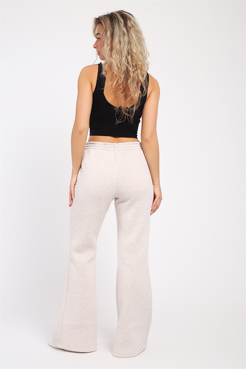 Брюки с карманами, расклешенные от колена, изготовлены из футера с начесом.