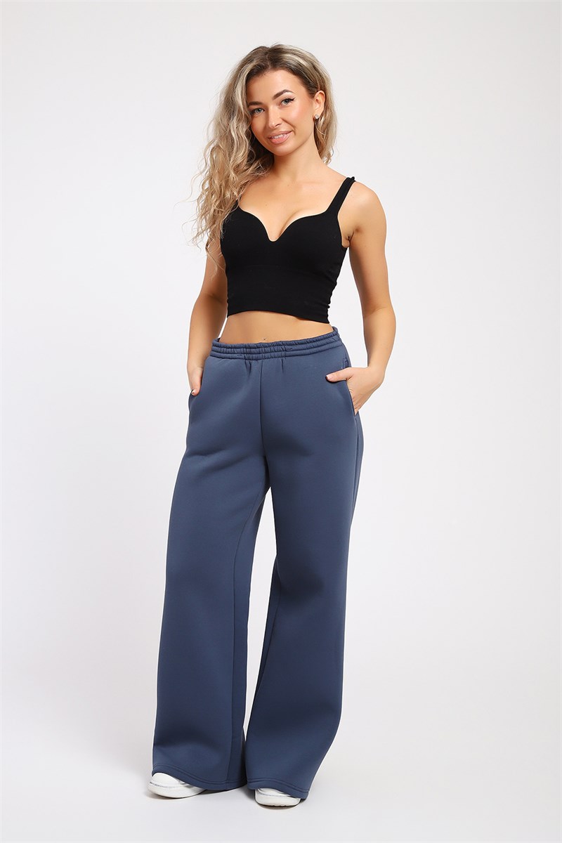 Брюки из футера с начесом свободного покроя. В боковых швах карманы.