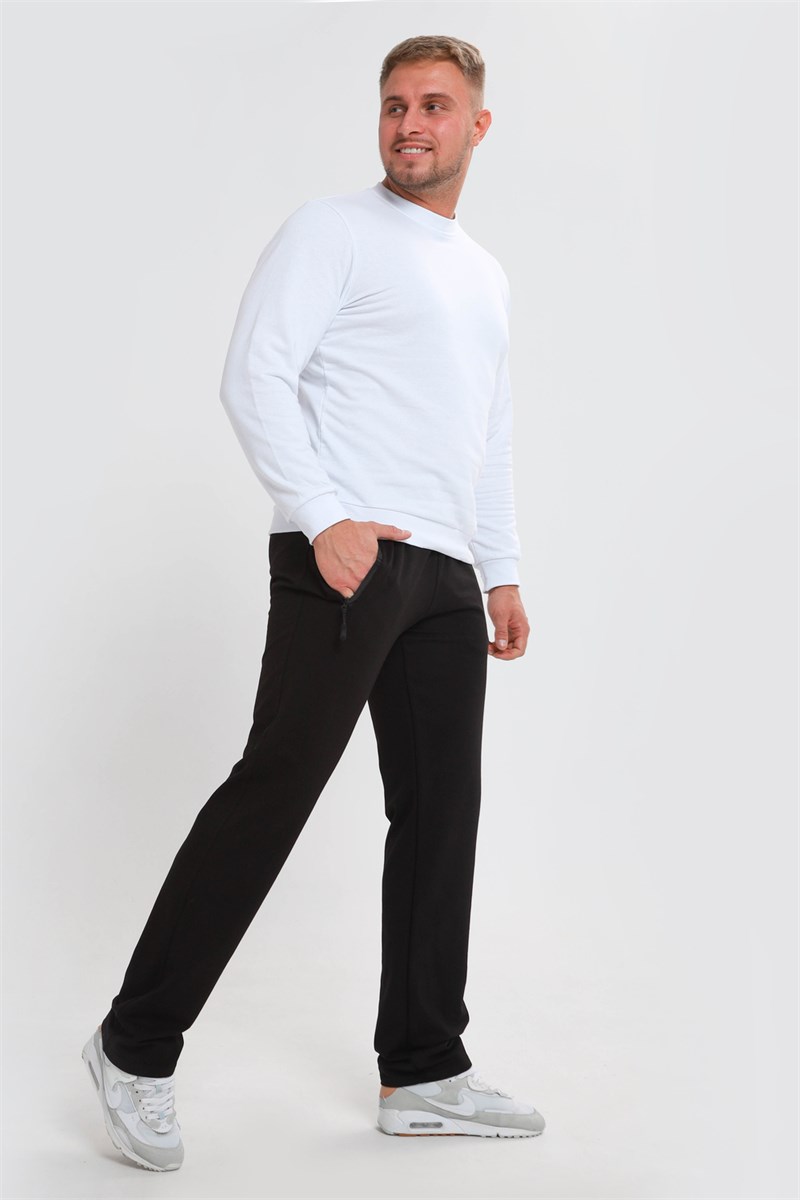 Мужские спортивные брюки прямого кроя, пояс на резинке - средняя посадка. Два боковых кармана на молнии с вставкой из плащевки. Материал держит форму, не скатывается. Подойдут для повседневной носки, для занятий спортом.