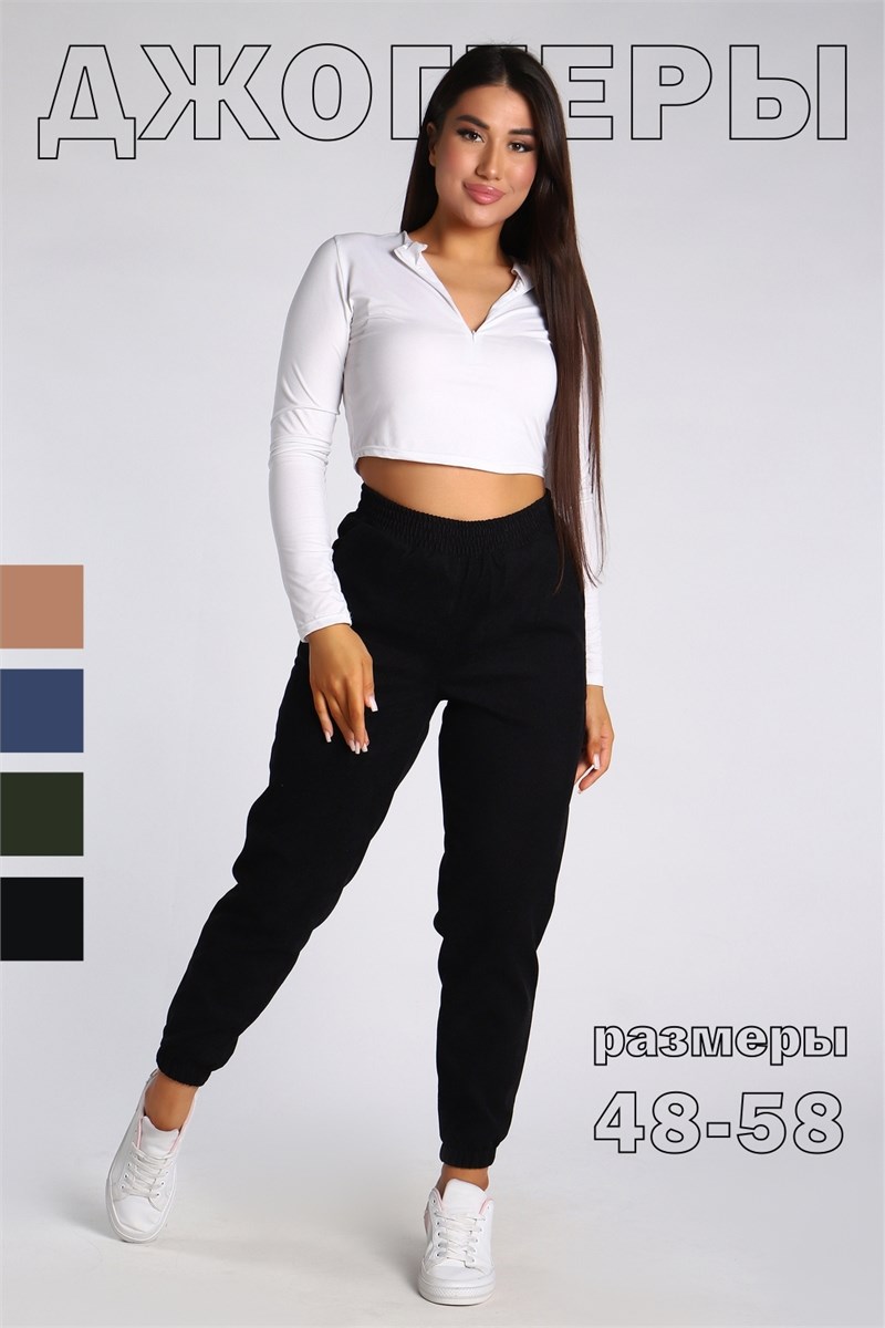 Удобные повседневные брюки-джоггеры из микровельвета. Подойдут для работы, прогулок, встреч с друзьями. Модель хорошо смотрится со спортивной обувью .Ткань микровельвет отличается практичностью: она не мнется, не электризуется, проста в уходе. Брюки прямого кроя, слегка зауженные, внизу собраны на резинку шириной 3см. Широкий пояс на резинке, простроченный на спецмашине, обеспечит удобство в носке. Высокая посадка, по бокам внутренние карманы. В замерах обхват талии соответствует длине резинки в растянутом виде.