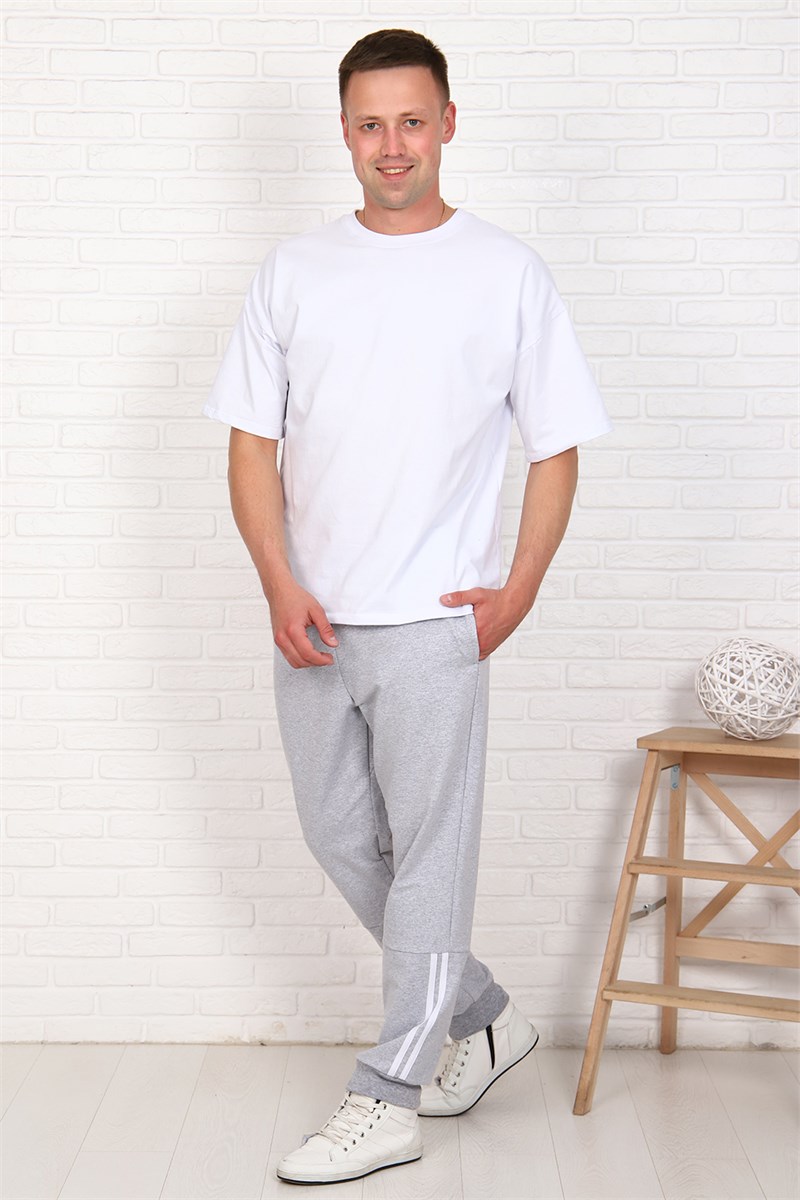 Молодежное мужское трико из футера. Пришивной пояс, внизу манжета из кашкорсе. Трико с карманами. По обеим сторонам лампасы.