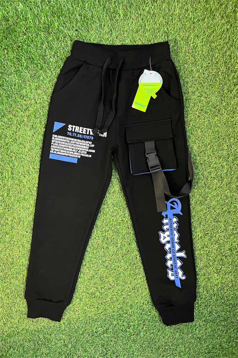 Брюки спортивные для детей из трикотажного полотна футер с лайкрой. Штаны на поясе из эластичного трикотажа с резинкой внутри, низ брюк на манжете из эластичного трикотажа. На передней части штанин накладной карман.