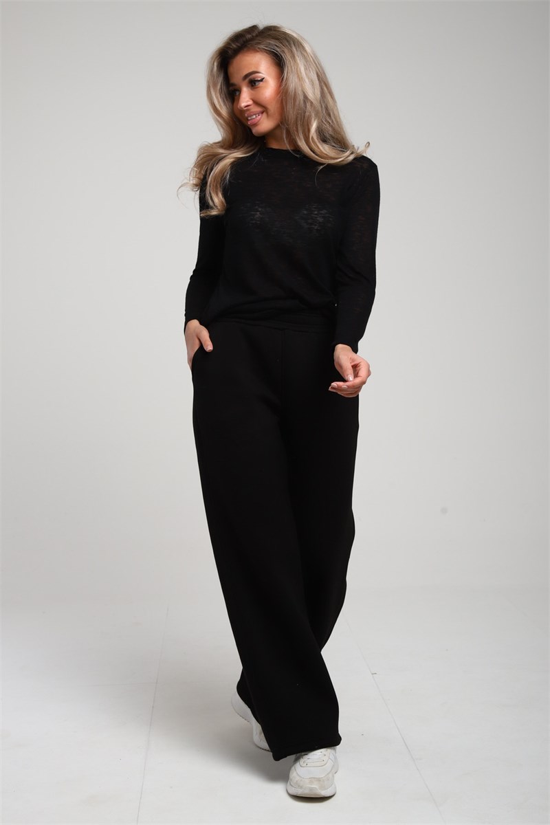 Женские широкие брюки, прямого силуэта, с притачным поясом внутрь которого вставлена эластичная резинка шириной 5см. Передние половинки с карманами. Боковые швы со смещением на перед к низу. По среднему шву передних и задних половинок расположена отстройка. Низ брюк подогнут. Брюки сшиты из футера 3-х нитки с начесом. Данная модель отлично сочетается с жилетом под номером 78573 и лонгсливом, образуя монохромный комплект на ваш вкус. А актуальность представленных брюк позволит вам подобрать к ним самые уютные и теплые образы в холодное время года. Материал устойчив к истиранию, выцветанию, сминаемости за счет этого, вы всегда будете иметь аккуратный и ухоженный вид, так же не будет вытягиваться в коленях и локтях. При первых носках ворс может скатываться и оставаться на белье, это проходит после 1-2 стирки. На фото модель представлена в 48 размере.