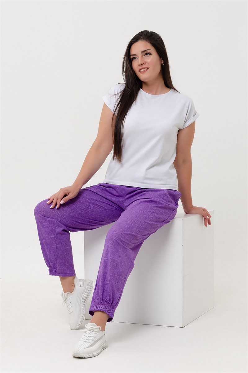 Брюки женские, свободные по бедрам, низ передней части брюк на резинке. Пояс выполнен на многоигольной машине. На передней части брюк внутренние карманы.