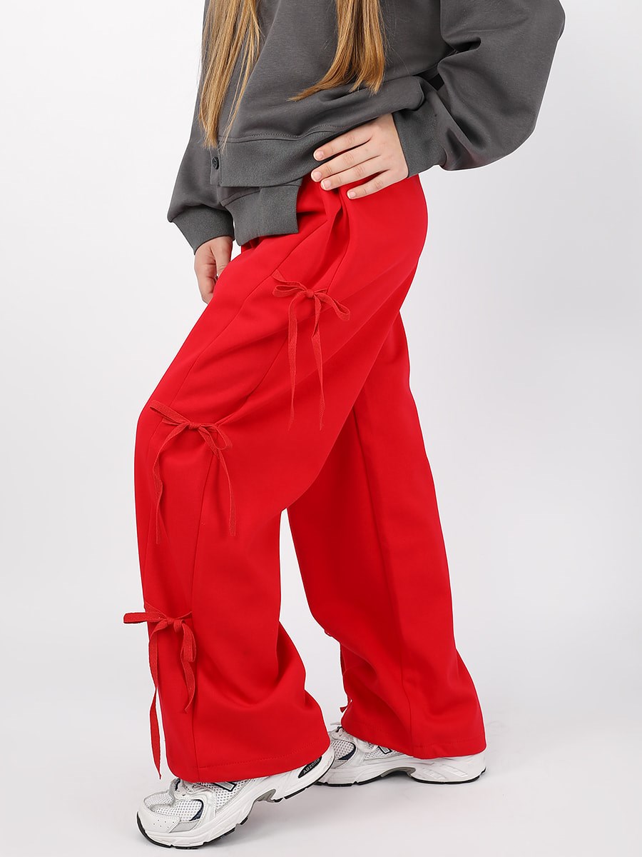 Брюки палаццо для девочки СольПерец в стиле спорт-шик, с лентами по бокам. По талии брюки на широкой, эластичной резинке со шнурком. Низ брючин на кулиске, что позволяет регулировать длину. Брюки выполнены из износостойкой трикотажной ткани Лининг которая долго сохраняет форму и привлекательный внешний вид.