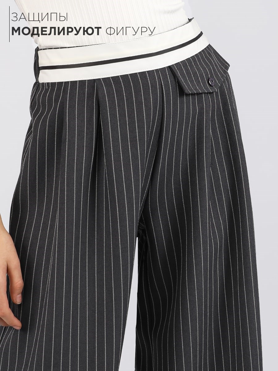 Брюки для девочки СольПерец. Модель имеет расширяющийся от бедра силуэт, что визуально вытягивает фигуру. Брюки застёгиваются на потайную молнию, сзади в пояс вшита резинка. Брюки прекрасно сочетаются с любым верхом, и подойдут для любого мероприятия, подчеркнут индивидуальный стиль девочки, и разнообразят её школьный образ.