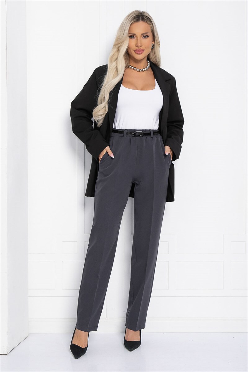 Классические брюки станут отличным дополнением к вашему гардеробу. Они изготовлены из ткани, которая не мнётся, что позволяет им сохранять безупречный вид в течение всего дня. Благодаря высокой посадке и резинке на талии эти брюки обеспечивают максимальный комфорт. Они подходят как для офисного стиля, так и для более расслабленных образов.
