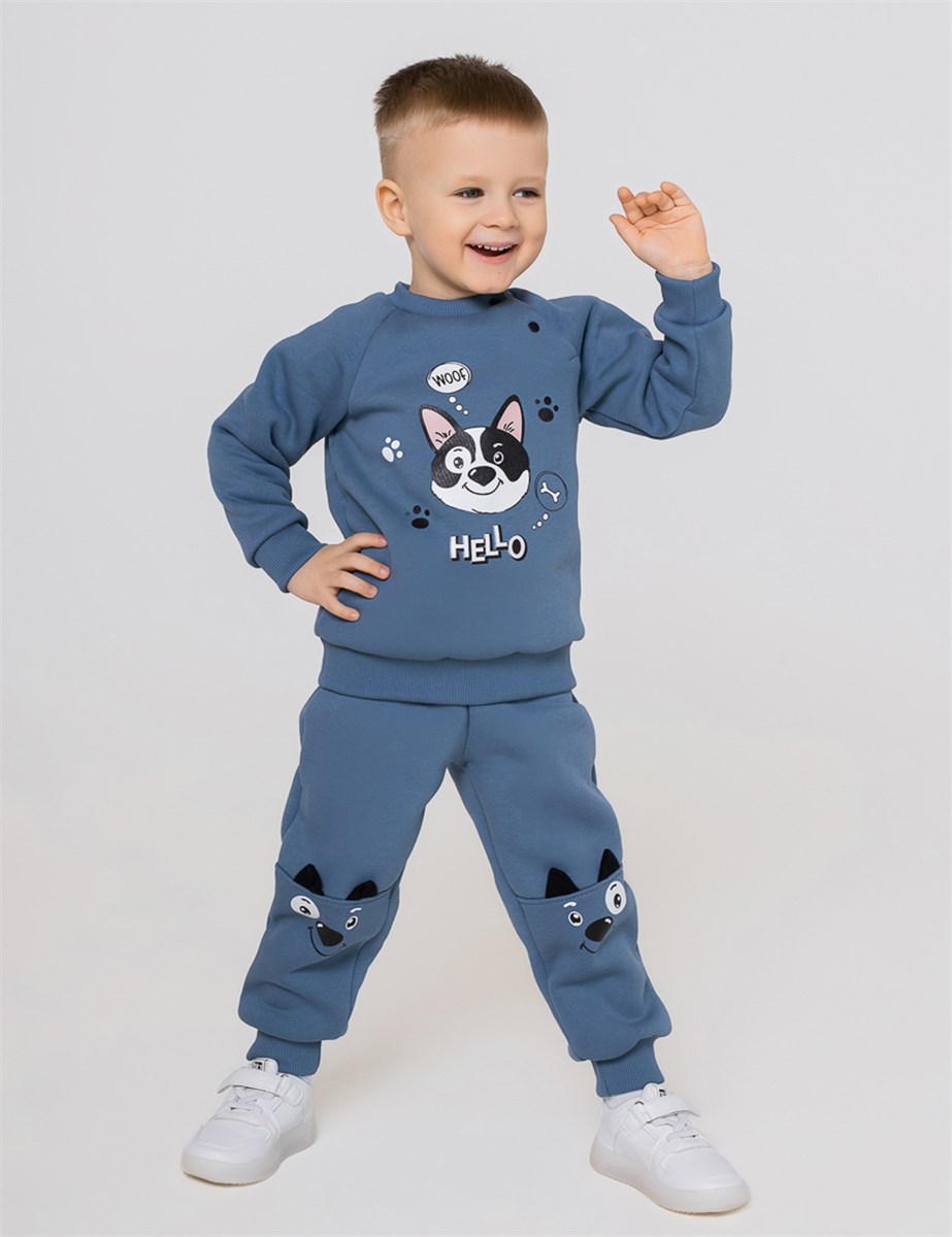 Брюки Кольт для мальчика из мягкого футера с начёсом. Пояс на резинке, низ штанины на эластичных манжетах. Принт, нанесённый методом шелкографии.