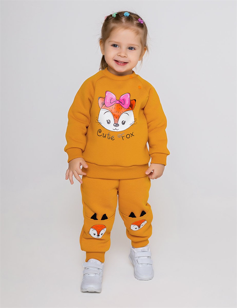 Брюки Софи для девочки из мягкого футера с начёсом. Пояс на резинке, низ штанины на эластичных манжетах. Принт, нанесённый методом шелкографии.
