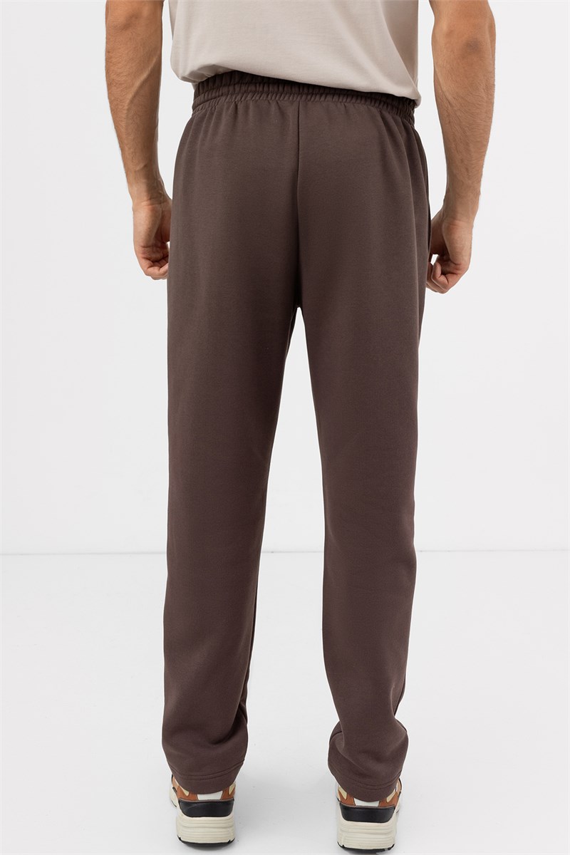 Прямые свободные брюки для мужчин. Выполнены из тёплого футера с подчёсом. Пояс с эластичной тесьмой внутри и шнурком-завязкой, который позволяет регулировать ширину в талии. Есть удобные боковые карманы. Гульфик не функциональный, имитация. Штанины подогнуты. Рекомендуем!