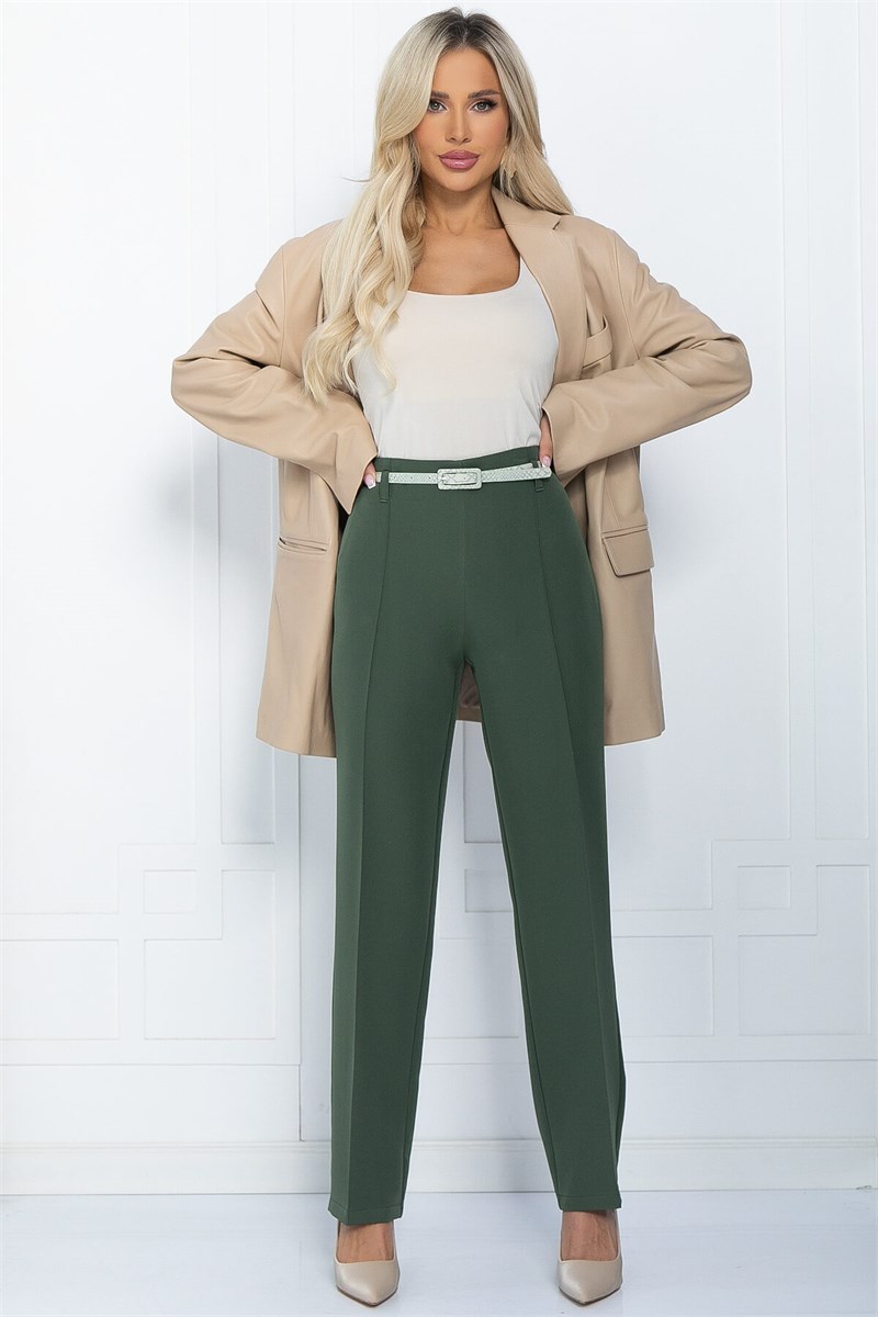 Стильные и элегантные классические брюки прямого кроя идеально подойдут для вашего делового или повседневного гардероба. Особенностью модели является утончённая застрочка по стрелке, которая визуально удлиняет ноги и придаёт образу строгости и изящества. В комплект входит ремешок молочного цвета под рептилию, который станет изысканным акцентом и завершит ваш образ. Отлично сочетаются с классическими блузками, жакетами и обувью на каблуке, позволяя создавать стильные и актуальные луки для любого случая!