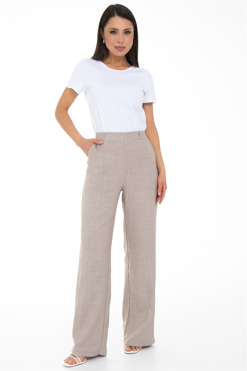 Женские летние брюки палаццо - идеальный выбор для жарких дней! Удобный крой и легкая вискозная ткань "жатка под лен" подарят вам свободу движений и максимальный комфорт. Модель, которая прекрасно садится на любую фигуру и скрывает все недостатки. Благодаря резинке на талии, такая модель идеально подойдет большинству женщин. Пояс притачной, по переду классический с имитацией застежки, по спинке вставлена резинка шириной 4 см для плотного прилегания в области талии. В боковых швах удобные карманы. Прямые свободные боюки - идеальный выбор для создания стильного современного образа.