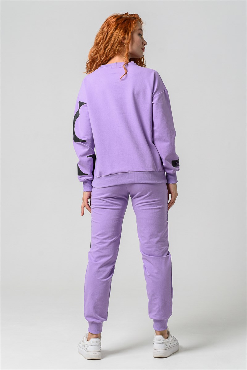 Женские брюки из футера 2-х нитки с лайкрой. По все длине брюк печать. По низу брюк резинка.