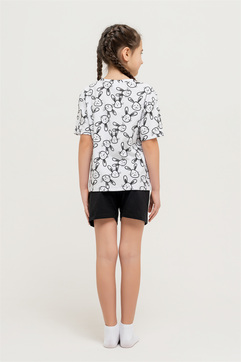 Симпатичный принт зайцев обязательно привлечет внимание окружающих и понравится детям. Данная модель отлично сочетается как с шортами, так и с джинсами, что позволит создавать разнообразные стили для повседневной носки. Футболка легко стирается и сохраняет яркость цветов даже после многоразовой стирки, что делает её практичным выбором для родителей.