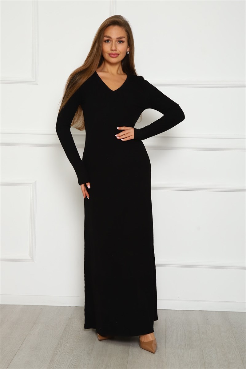 Женское обтягивающее трикотажное платье лапша это роскошная универсальная модель для стильного и трендового образа. С длиной в пол оно идеально подходит как для повседневного использования в демисезонное время, так и для вечерних мероприятий летом или поход в ресторан на свидание зимним вечером. Стильный приталенный крой обрамляет фигуру. Этот модный наряд отлично сочетается с различными аксессуарами. В основе платья - трикотажный однотонный материал, обеспечивающий качество и комфорт при носке. Приятное к телу теплое полотно позволяет коже дышать, долго сохраняет первоначальный вид и стиль платья. Длинные расклешенные широкие рукава добавляют изысканности обтягивающему платью в рубчик и гармонично завершают композицию. Возможность комбинировать с любой обувью, будь то летние ботинки, зимние туфли или кеды, дает шанс создавать луки для любого сезона, будь то весна или осень. Этот фасон исключительно универсален: он подойдет для офиса, прогулок или праздничных торжественных событий таких как, день рождения, вечеринка, фотосессия, корпоратив, на новогоднее мероприятие или просто выход в клуб. Красивый внешний вид делает его идеальным выбором в праздник для девушек и женщин всех возрастов, подросткам для школьных молодежных торжеств, девушкам на весеннюю прогулку и для деловой встречи, подружкам невест на свадебное мероприятие. Это шикарное коктейльное черное платье можно носить каждый день или сохранить для особых случаев его привлекательность от этого не изменится.