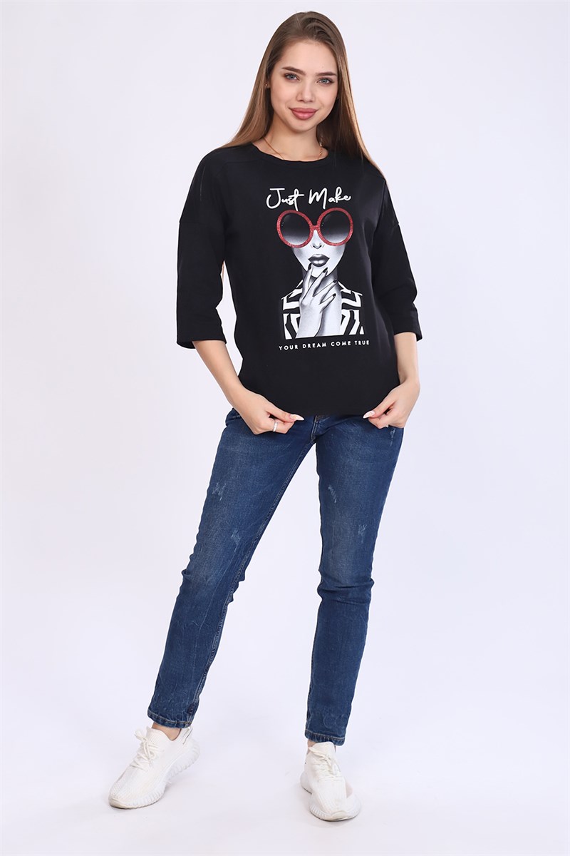 Джемпер женский с ярким, оригинальным принтом из мягкого футера с лайкрой 2-х нитка. Модель слегка приталенного силуэта, круглая горловина обработана обтачкой, спущенная пройма, свободный 3/4 рукав, на спинке кокетка, низ слегка удлинён и закруглён. Стильный, комфортный джемпер необходимая вещь в гардеробе деловой, современной девушки, отличный офисный вариант, хорошо будет смотреться как с брюками, так и с юбкой.