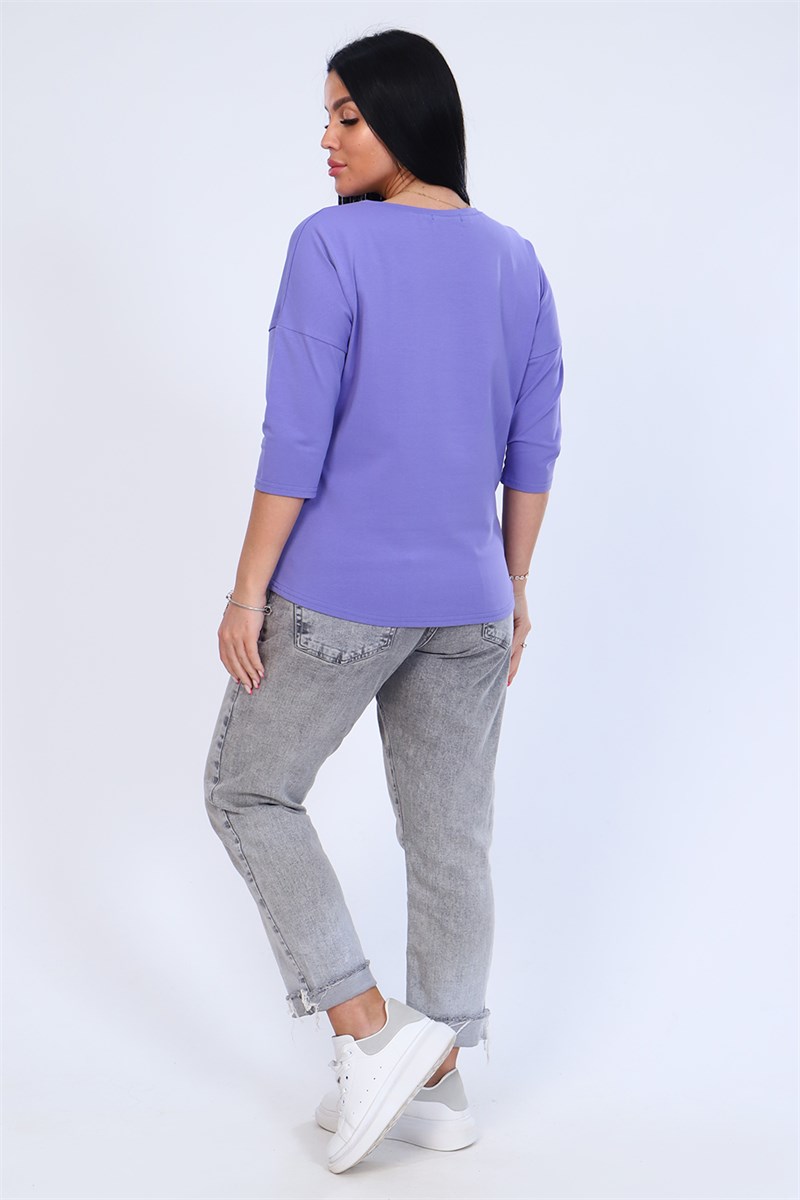 Джемпер женский с мерцающим принтом, из плотной кулирки с лайкрой высокого качества пенье. Футболка с рукавом 3/4, слегка приталенного силуэта, горловина круглая обработана обтачкой, спущенная пройма, спинка слегка удлинена. Лонгслив стильный, лёгкий, приятный к телу, отлично подойдёт как для работы в офисе, так и для вечерних мероприятий.