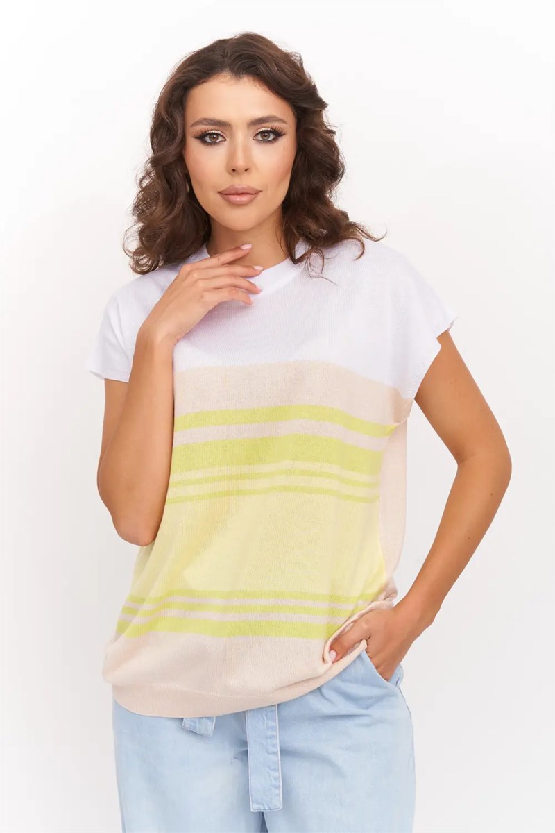 Легкий трикотажный джемпер со спущеной линией плеча и круглой горловиной. Выполнен из пряжи, в составе которой 50% вискозы, что позволяет носить его как базовую вещь летом, либо весной и осенью под пиджак. В джемпере будет Вам комфортно на прогулках в теплое время года. Джемпер прямого силуэта подойдет для любого типа фигуры и составит оригинальный, модный и женственный образ абсолютно с любым низом: юбка, брюки, джинсы.