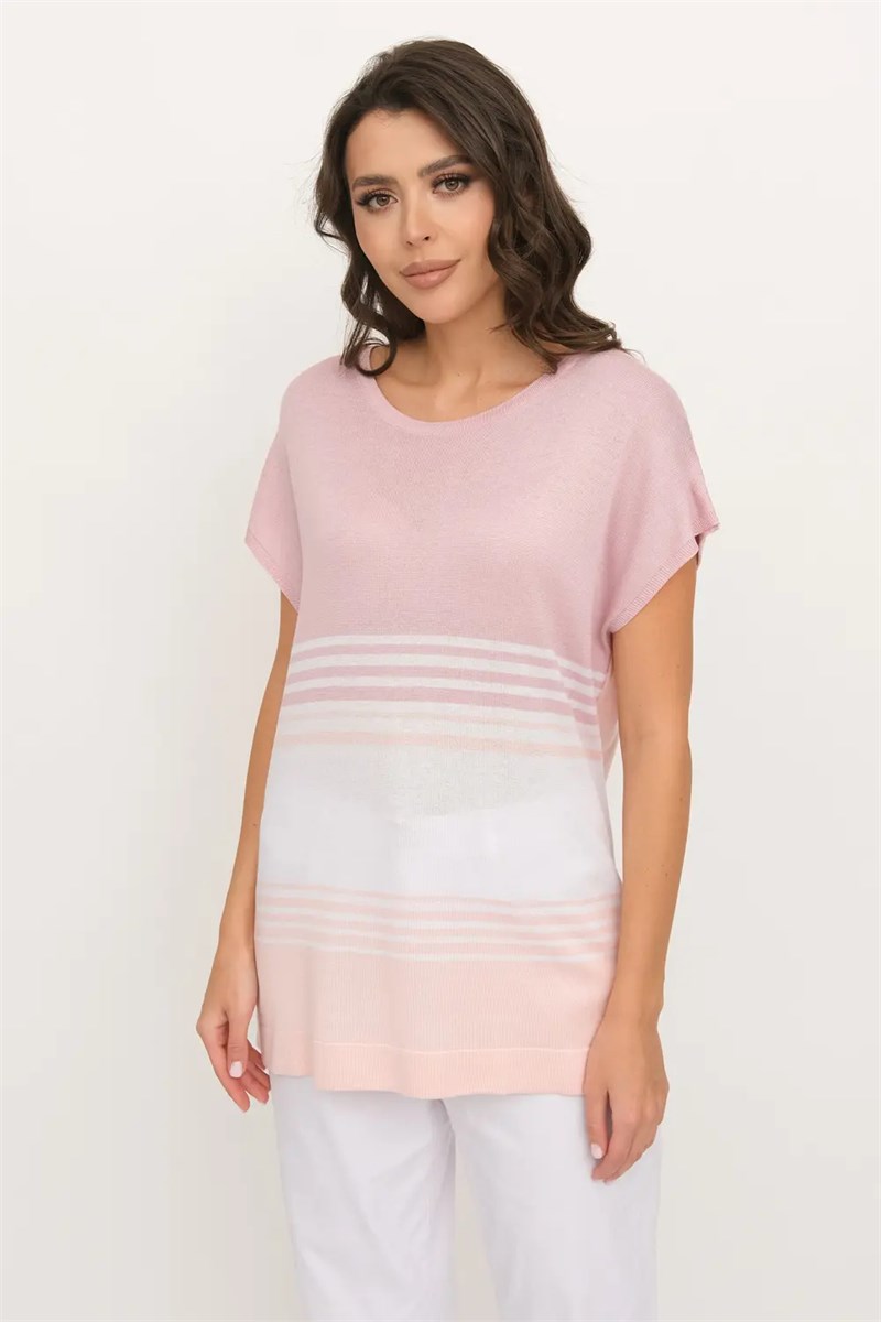 Легкий трикотажный джемпер со спущеной линией плеча и круглой горловиной. Выполнен из пряжи, в составе которой 50% вискозы, что позволяет носить его как базовую вещь летом, либо весной и осенью под пиджак. В джемпере будет Вам комфортно на прогулках в теплое время года. Джемпер прямого силуэта подойдет для любого типа фигуры и составит оригинальный, модный и женственный образ абсолютно с любым низом: юбка, брюки, джинсы.