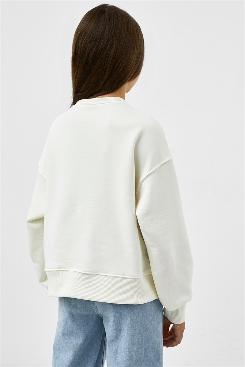 Очаровательный джемпер прямого силуэта для девочек. Выполнен из легкого трикотажного футера. Вырез круглый, классический, не глубокий. Рукава длинные, с широкими манжетами. Спущенная линия плеча дарит особый комфорт. Стильно!