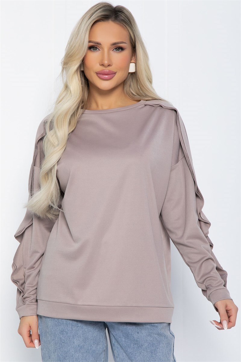 Стильный и выразительный джемпер — это то, что нужно для вашего гардероба. Он добавит изюминку в ваш образ и сделает его неповторимым. Этот универсальный джемпер без лишних деталей, таких как принты, надписи или вышивка, подойдёт к любому стилю. Особенность модели — воланы по всей длине рукавов. Они придают джемперу игривость и оригинальность.