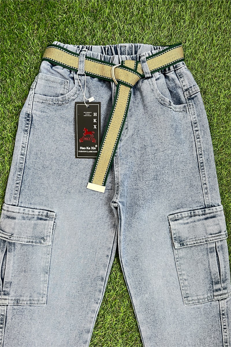 Стильные голубые джинсы на резинке с накладными функциональными карманами по бокам. Сочетайте вещь с любыми футболками и рубашками и получайте новые крутые образы на каждый день Текстильный ремень в комплекте.