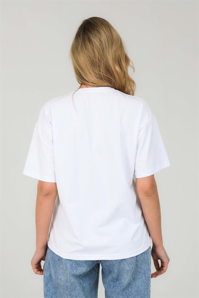 Женская футболка прямого свободного кроя - очень удобная, лёгкая и стильная. Эффектно смотрится и подходит на каждый день. Изделие изготовлено из высококачественного хлопка. Добавление эластана способствует длительному сохранению формы и цвета. Длина рукава указана в измерениях от точки основания шеи.