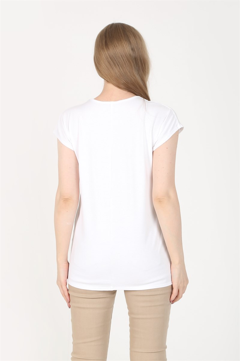 Модель свободного силуэта длиной до линии бёдер, со спущенной проймой. На передней части изделия нанесена стильная современная печать, боковой шов переходит в небольшой разрез, низ спереди чуть короче, чем спинка. Футболка изготовлена из приятной и комфортной вискозы, сочетается с любой одеждой.