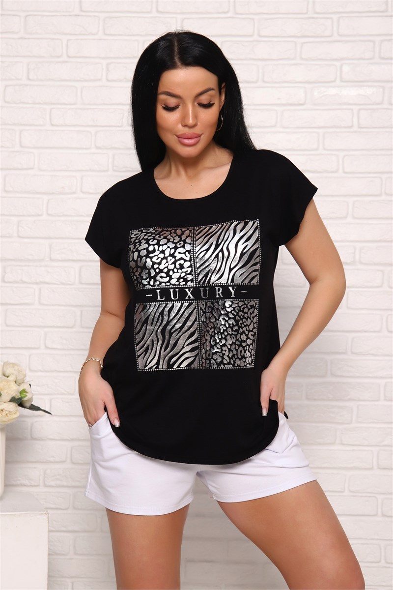 Модель полуприлегающего силуэта со спущенной проймой, на передней части интересный и модный принт, в боковых швах разрезы. Легкая и приятная футболка подойдёт и для жарких деньков летом ,и под пиджак или жакет в прохладную погоду, сочетается с любым низом: шортами, легинсами, брюками, юбками. Для любого Вашего образа изготавливается в трёх расцветках.