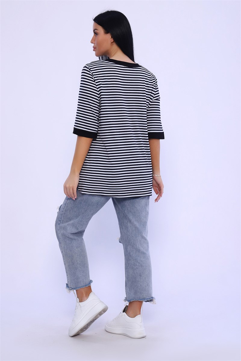 Футболка в полоску с рукавом 3/4 - это прекрасный выбор для вас. Большой размерный ряд! Футболка выполнена из приятной к телу вискозы, что обеспечивает комфорт на протяжении всего дня. Эта футболка женская идеально подходит как для повседневной носки, так и для офиса. Вы можете сочетать ее с джинсами, шортами или даже с кроссовками для прогулок.
