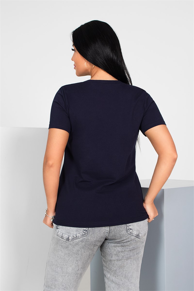 Футболка женская классическая с округлой горловиной. С печатью на полочке.