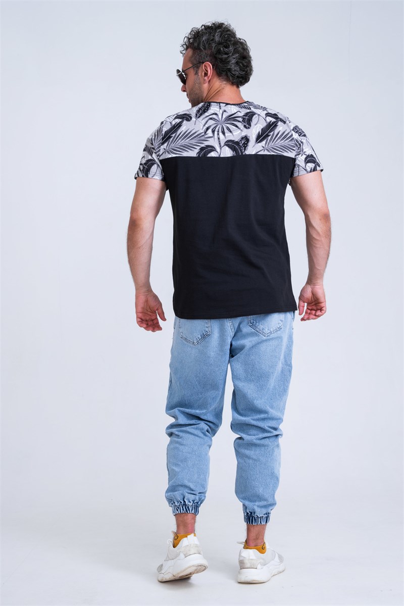 Мужская футболка с круглым вырезом горловины. Выполнена в двух расцветах. Спинка горловины усилена бейкой из основного полотна. Вырез горловины закрыт декоративной обтачкой.