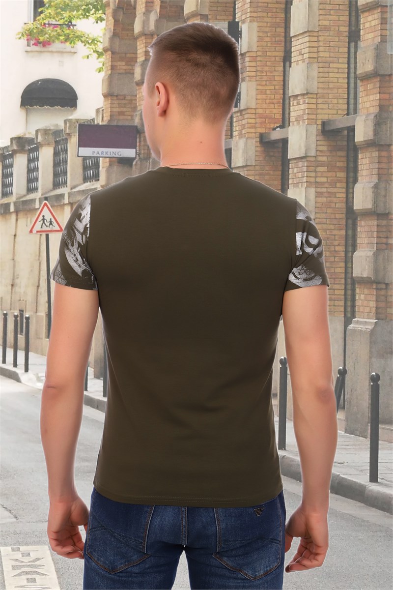 Мужская футболка из кулирки. Короткие рукава, круглая горловина, украшена печатью на груди и рукавах, прямой силуэт.