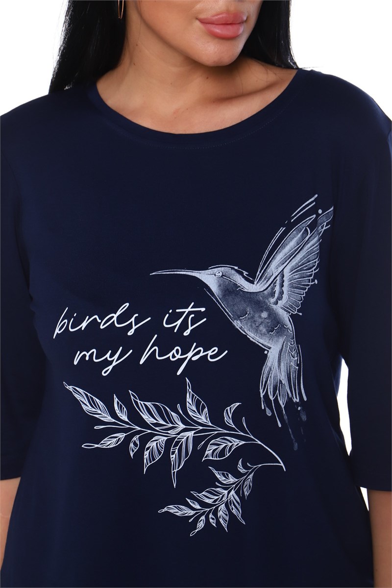 Футболка женская из вискозы. Украшена печатью, рукав 3/4. На модели 52 размер