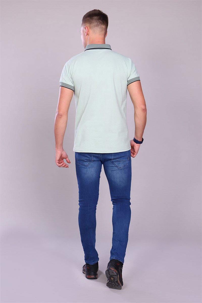 Футболка поло из ткани пике лакост. Воротник и манжеты вязаные контрастного цвета с отделочной полосой. На левой стороне карман. Для дома, отдыха, прогулок и спорта. Сохраняет цвет и форму после стирки.